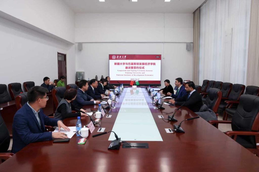 10月17日下午,新疆大学与巴基斯坦发展经济学院座谈暨签约仪式在新疆大学博达校区举行。新疆大学党委副书记、校长马新宾,巴基斯坦发展经济学院副校长穆罕默德·纳迪姆·贾维德代表双方签署合作备忘录并讲话。签约仪式由新疆大学党委常委、副校长刘正江主持。马新宾对穆罕默德·纳迪姆·贾维德一行表示热烈欢迎,对两校合作谅解备忘录的签署表示祝贺。他表示,长期以来,新疆大学与巴基斯坦政府、高校交流密切、互动频繁。期待与巴...