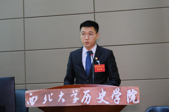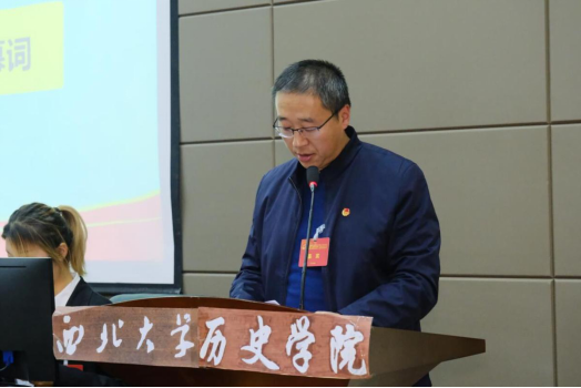 学院团委副书记余洪代表共青团西北大学历史学院向大会作了题为《固本强基求突破 凝心聚力谱新篇——团结带领全院团员青年为学院建设发展贡献青春力量》的工作报告。报告回顾了近年来历史学院共青团在学院党委和校团委的坚强领导和悉心指导下推进的各项工作,对当前学院共青团工作的现状与挑战进行了深刻的分析,并对新时期学院共青团工作提出展望。在新阶段,学院共青团将从提高政治站位,增强思想引领工作成效;推进共青团改革,夯实共青团工作组织基础;把握青年成长规律,服务引导学生成才三个方面开展工作,进一步发挥共青团的活力,为国家建设培养具有高度使命感和社会责任感的新青年。