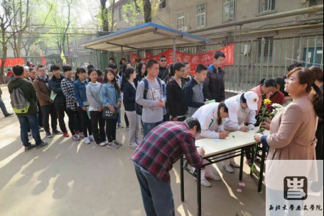 3月31日上午,西北大学历史学院爱•渡志愿者协会的部分会员在协会会长张超同学的带领下参加了在西大社区举行的清明节文明祭奠活动。