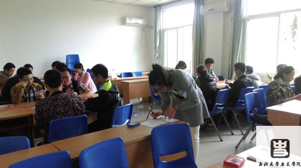 421日下午两点三十分,经过紧锣密鼓的准备,历史学院学生会组织部于院楼420教室成功的举办了UNO纸牌友谊交流赛。UNO纸牌是一个集智慧与运气于一身的休闲牌类,有着很高的娱乐性和竞技性,近年来深受中国青年群体的喜爱。为了丰富同学们的课余生活,活跃大家的气氛,不占用大家学习的时间,我们选择了星期六这个恰当的时机举行友谊交流赛。