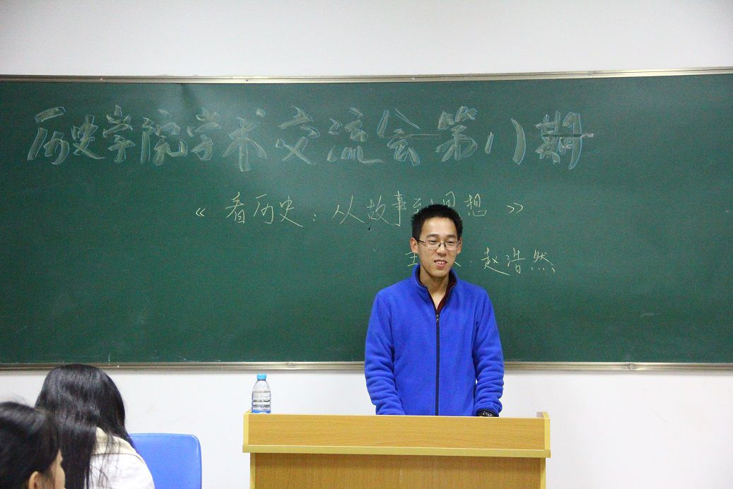 20141125日晚七点,我院学生会学习部于历史学院420教室举办了历史学院学术交流会第八期——《看历史:从故事到思想》。大二基地班的赵浩然同学担任主讲,来自本院的各年级同学和部分其他院系的同学参加了本次交流活动。