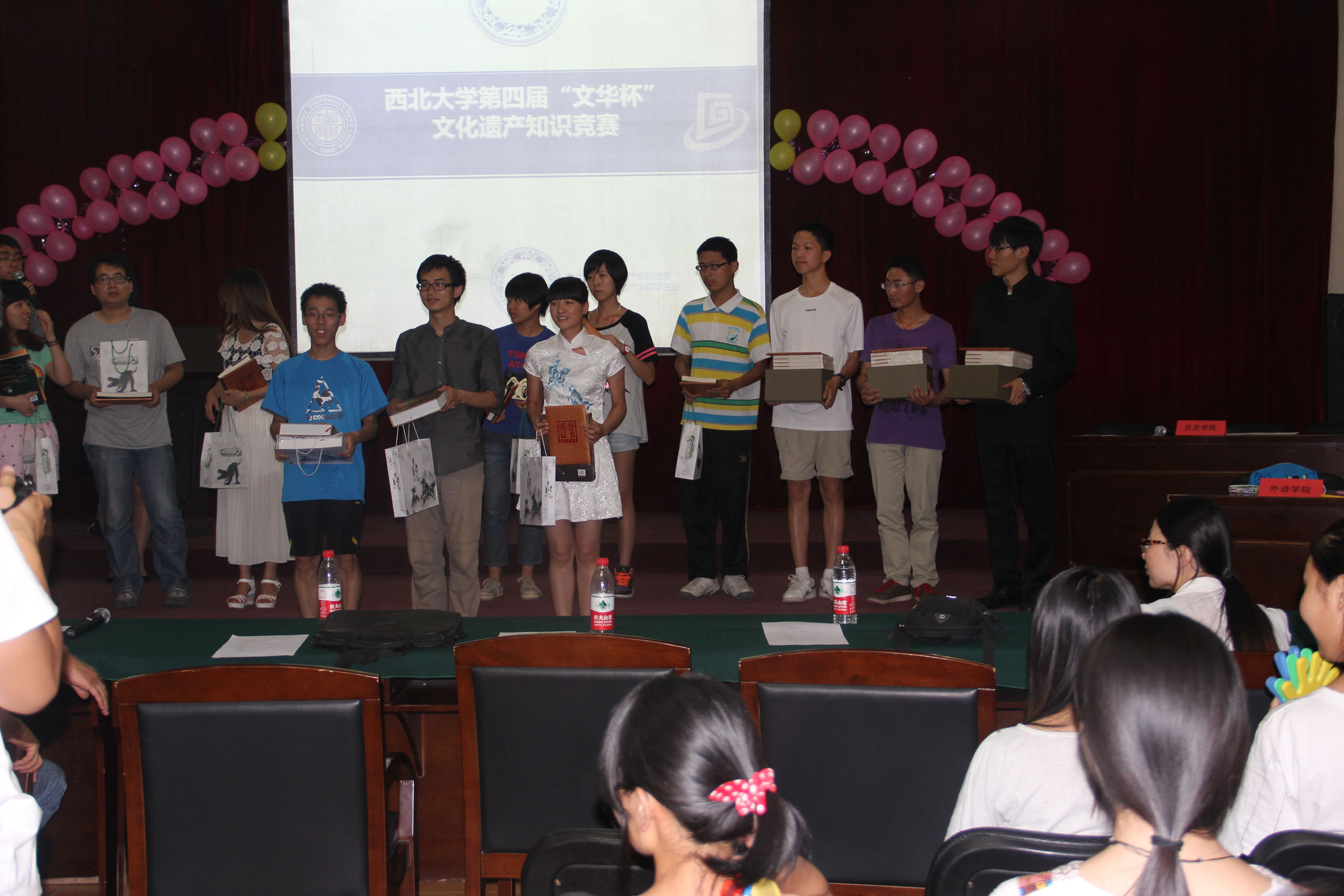 201469日晚,在西北大学文化遗产学院举办的第四届“文华杯”知识竞赛决赛中,历史学院由赵浩然、吴樾、吴贵飞三位同学组成的代表队,一路过关斩将,以总积分403分第一名的成绩为我院勇夺冠军。