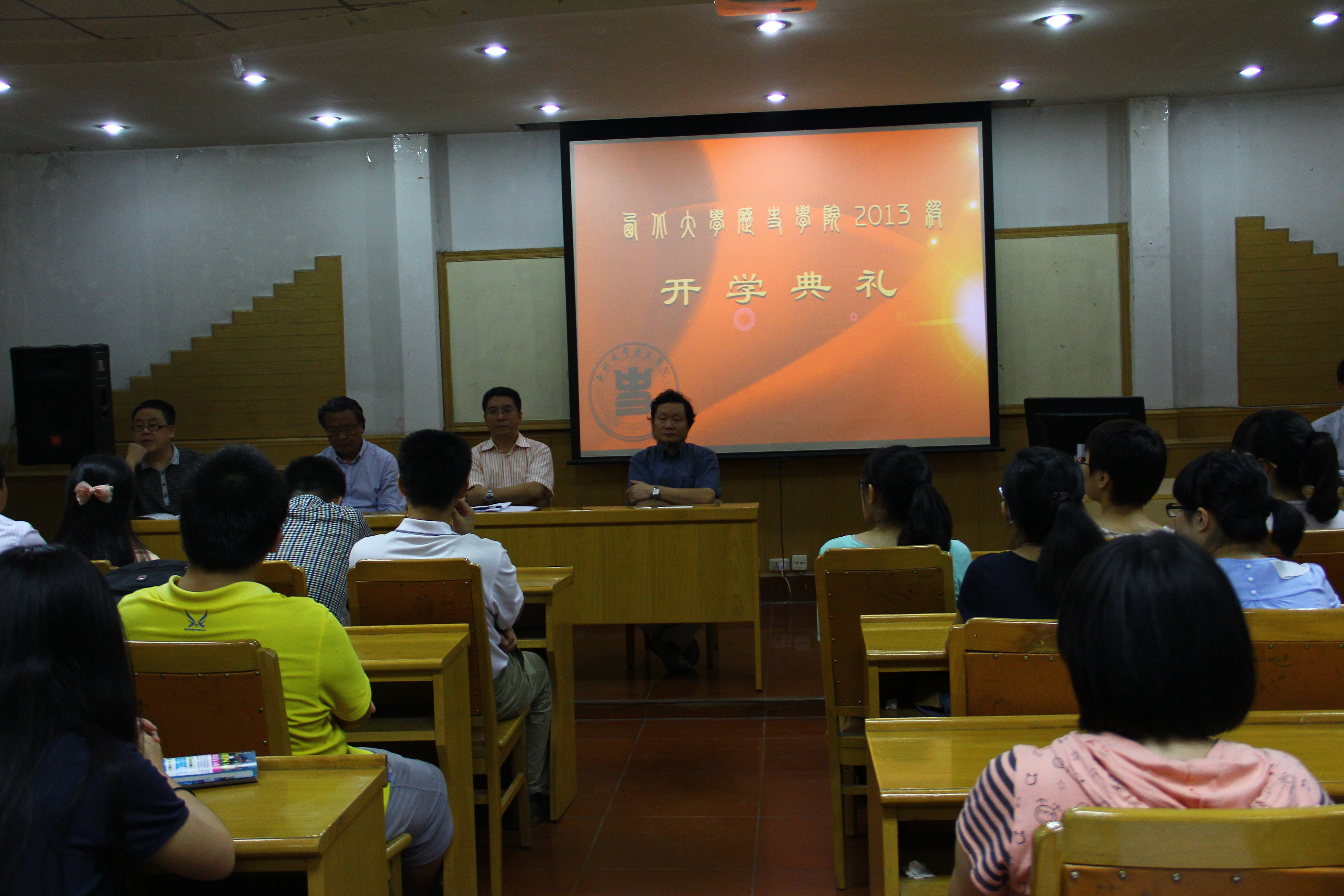 西北大学历史学院2013级新生开学典礼于94日下午230分在历史学院二楼多媒体教室隆重举行。出席本次典礼的有我院院长陈峰教授、党总支书记李国良老师、副院长王新刚教授、副院长李长宏老师以及团委书记薛原老师。2013级全体本科和研究生新生参加了此次典礼。