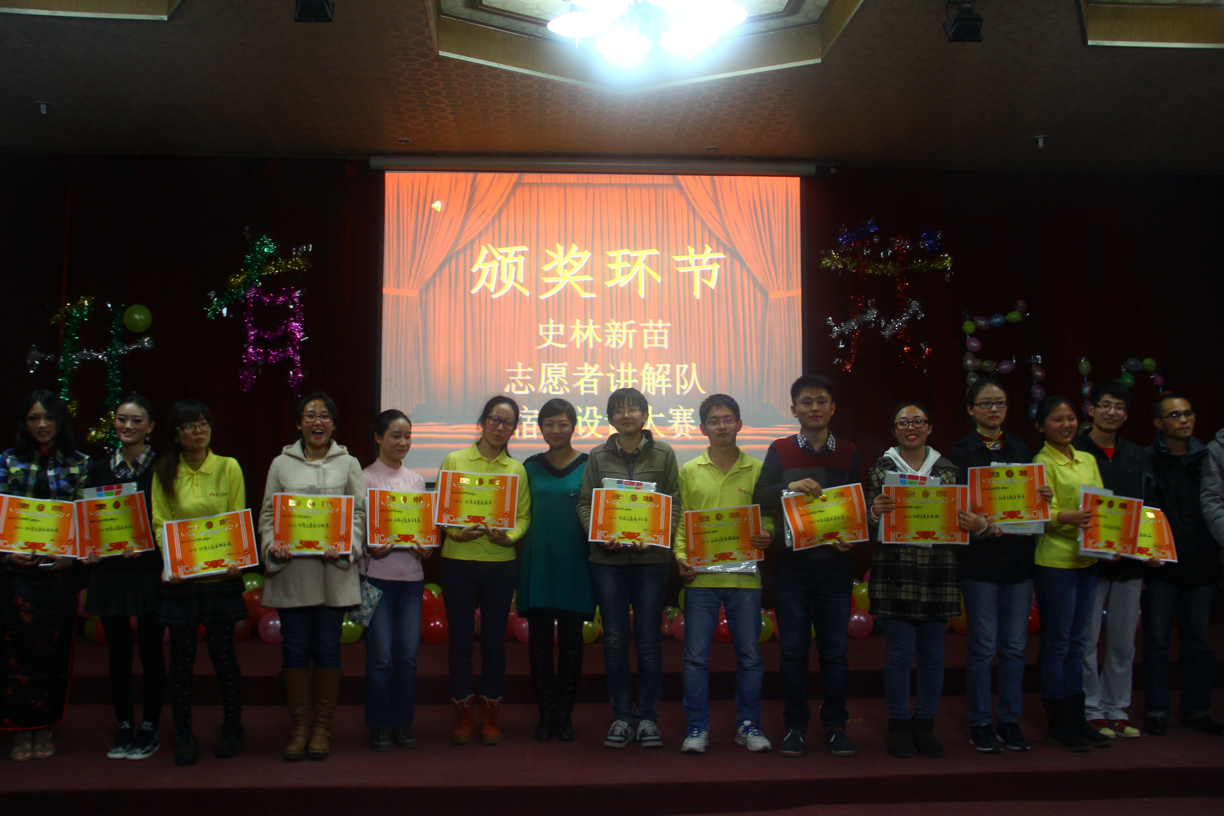 晚会节目精彩纷呈,别具一格,有充满历史韵味的《进学解》《自挂东南枝》,有展现少数民族舞蹈的《七月火把节》,有趣味小品《知识竞赛》,有萌点十足的舞蹈《恋爱循环》,原汁原味,充分展现我院学生表演能力的话剧《雷雨》,还有另类搞笑的朦胧诗朗诵。接着,我院举行了颁奖仪式,对这一年来在《史林新苗》辛勤工作的编辑们,在陕西省历史博物馆和西安市博物院一丝不苟的讲解员们,以及宿舍设计大赛表现优异的宿舍代表们进行了证书颁发和礼品赠送。最后历史学院爱渡志愿者协会的成员们合唱《相亲相爱》,再次将全场的气氛推向了高潮。