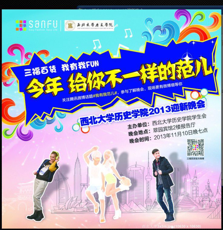 111619点,历史学院迎新晚会在萃园宾馆多功能报告厅顺利召开。今年我院迎新晚会以“我有我FUN”为主题,历时近一个月的筹备,成功的将一场精彩的,别开生面的晚会呈现给了观众。到场的领导及老师有:历史学院党总支书记李国良老师,总支秘书于欣荣老师生命科学学院邬家伟老师,物理学系郭平老师以及我院团委书记薛原老师,王早娟老师,李军老师刘志平老师等。