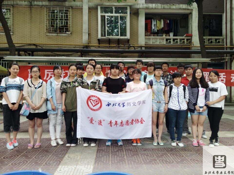517号下午一点半到三点,西北大学历史学院爱渡志愿者协会的志愿者们在梁悦同学的带领下来到了西大新村,进行义务清洁活动。