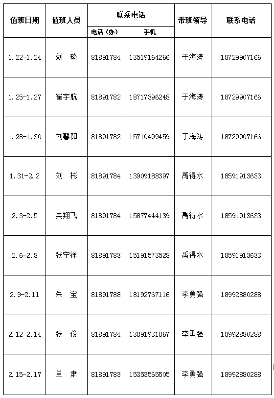 根据《伟德官网关于 2022 年寒假放假安排的通知》安排,2022年寒假放假时间为2022 年 1 月 22 日-2 月 17日,共27天。假期期间,我单位值班安排如下: