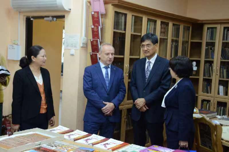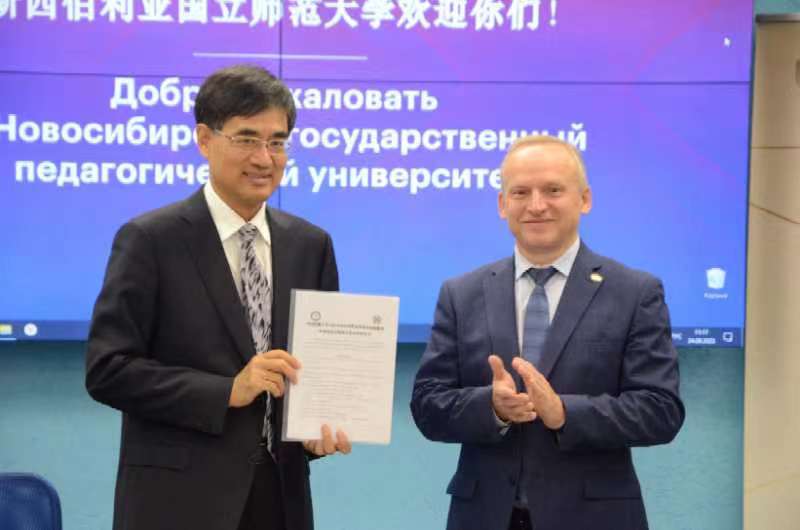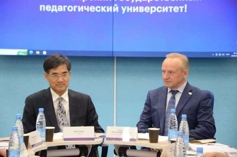 9月24日上午,新疆维吾尔自治区政协副主席、新疆大学党委书记许咸宜一行5人访问俄罗斯新西伯利亚国立师范大学,与新西伯利亚国立师范大学校长阿列克谢·格拉晓夫亲切会面并进行座谈。