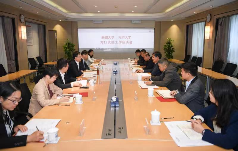 许咸宜对同济大学长期以来给予新疆大学的关心支持和无私帮助表示由衷感谢。许咸宜表示,多年来,同济大学党委以强烈的政治责任感和历史使命感推进对口支援新疆大学工作,高度重视,高位推动,取得了很好成效。经验弥足珍贵,成绩有目共睹。许咸宜表示,党中央高度重视新疆工作。新疆大学在自治区教育和科技发展中发挥着越发凸显的辐射引领作用,当前更迎来了前所未有的重要发展机遇期。希望两校进一步加强沟通合作,抢抓重大历史机遇,紧扣“一带一路”倡议,充分发挥同济大学学科、平台和人才等资源优势,以具体项目合作为抓手,深化对口支援合作新格局,不断提升对口支援新疆大学工作“造血功能”,在土木工程一级学科博士点申报、推进“1+2+3+x”组团式包建工作、深化拓展合作交流等方面取得新进展,携手提升服务国家战略和区域经济社会发展的能力与水平。