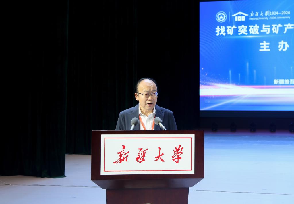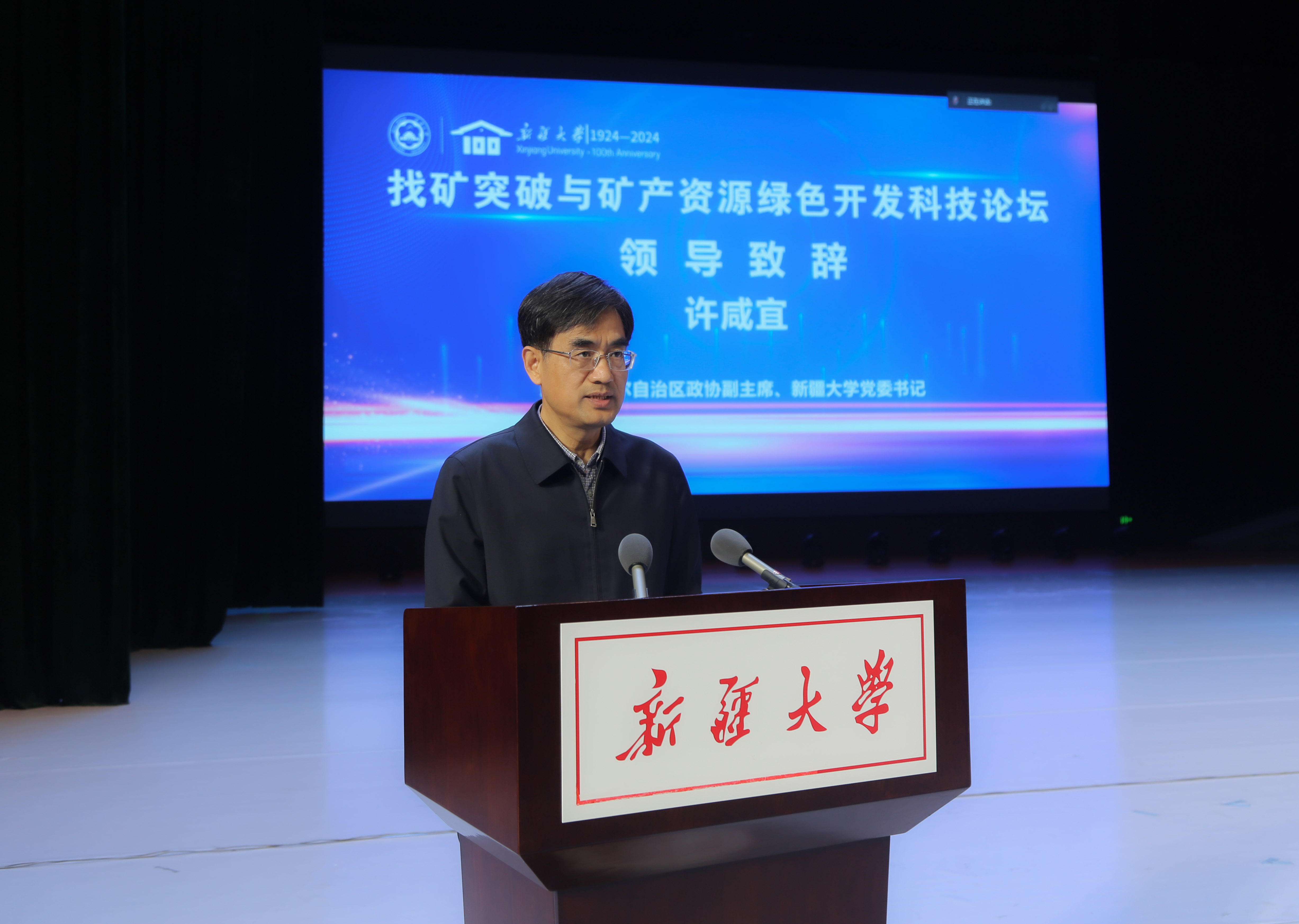 许咸宜代表新疆大学对出席论坛的各位院士专家和来宾表示热烈的欢迎。他指出,党和国家高度重视找矿工作,习近平总书记多次就保障国家能源资源安全作出重要指示批示。自治区党委和政府高度重视找矿和矿产资源绿色开发,明确提出要立足国家所需、新疆所能,加快实施新疆新一轮找矿突破战略行动,不断提升新疆对保障国家关键矿产资源安全的贡献度,努力展现新疆作为。本次科技论坛主题突出、立意明确,是新疆大学百年校庆系列学术活动中一次高规格、高水平的大会,也是推动新疆地矿行业高质量发展的一次盛会。新疆大学将进一步聚焦自治区“八大产业集群”建设,加快推进“双一流”建设,和与会院士专家们一道共同为加快推进新疆新一轮找矿突破战略行动、持续培育和释放新疆矿产资源优势、保障国家能源资源安全作出新的更大贡献。