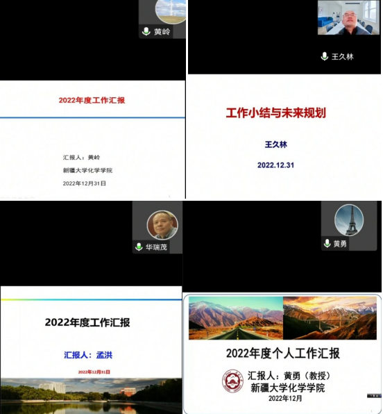 为全面总结2022年高层次人才工作进展情况,更好地发挥高层次人才在学科建设中的引领带动作用,2022年12月31日,新疆大学省部共建碳基能源化学与利用国家重点实验室、化学学院组织开展了高层次人才年度工作报告会。报告会特邀国省部共建碳基能源化学与利用国家重点实验室主任贾殿赠教授参加,黄岭、孟洪、王久林等三位“长江学者特聘教教授”和“万人计划”领军人才黄勇教授分别作2022年工作总结,学院领导班子和全体教职工聆听了报告会。