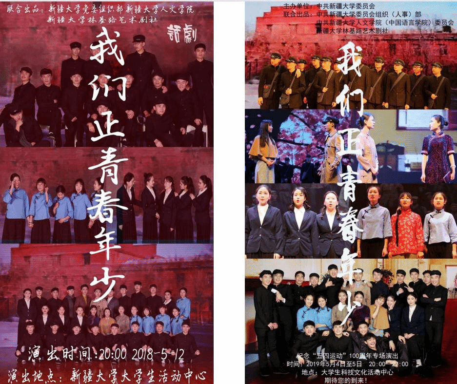 新疆大学林基路艺术剧社原创话剧《我们正青春年少》演出海报