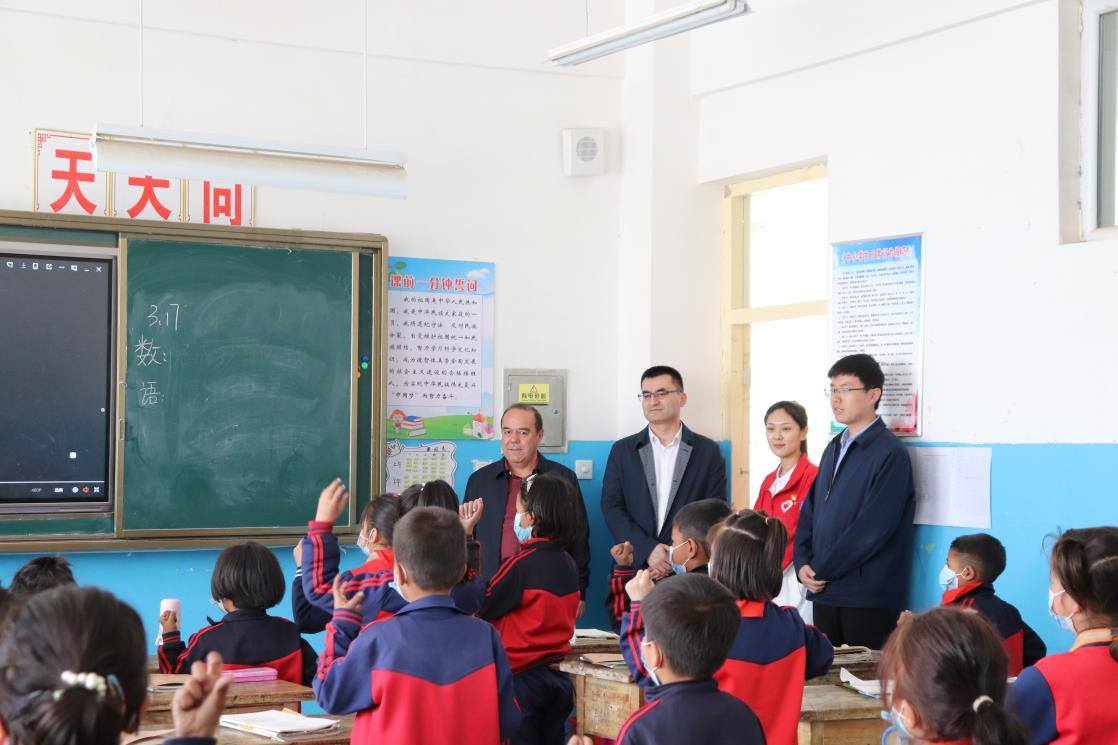 3月17日,新疆大学驻村工作总领队艾则孜·托乎提一行人来到和田县塔瓦库勒乡巴克墩村小学看望慰问我校第11届研究生支教团志愿者。
