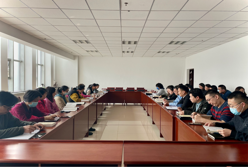 我校计财处全体干部职工以深入学习《习近平新时代中国特色社会主义思想专题摘编》为主线,采取集中学习、研讨交流形式,摘选<新时代中国特色社会主义思想实现了马克思主义中国化时代化新的飞跃><坚持和加强党的全面领导><坚定不移高举中国特色社会主义伟大旗帜>等内容进行朗读,并结合自身工作实际谈思想、话感悟,分享了阅读过程中的体会与收获。
