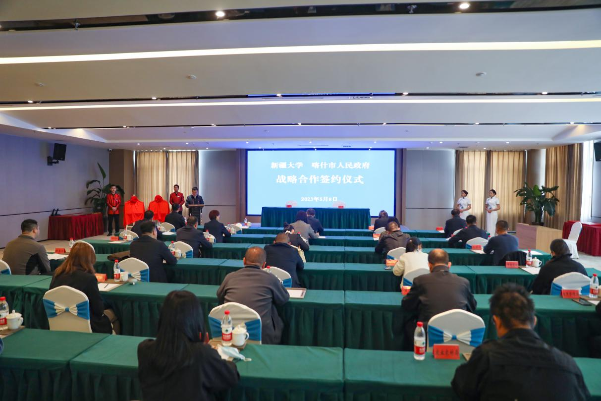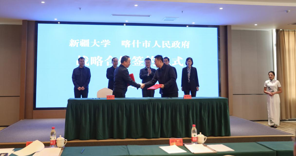 5月8日,新疆大学与喀什市人民政府战略合作框架协议签约仪式在喀什市举行。新疆大学党委常委、副校长顾光海,喀什市委书记药宁出席仪式并讲话。新疆大学党委常委、副校长顾光海同志与喀什市委常委、常务副市长王局同志代表双方签订战略合作框架协议,新疆大学马克思主义学院、旅游学院、中国语言文学学院与喀什市委统战部、喀什市文化体育广播电视和旅游局、中共喀什市委党校代表双方分别签订共建铸牢中华民族共同体意识研究基地合作协议、文旅产学基地和大学生实习实训基地合作协议书、国家语言文字推广基地协议书并揭牌。