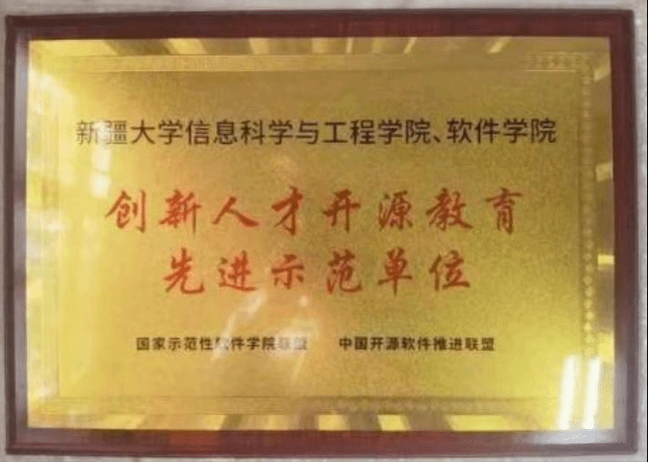 由于在计算机开源教育方面做出的重要贡献,新疆大学信息科学与工程学院(网络空间安全学院)、软件学院在第四届中国计算机教育大会上荣获“创新人才开源教育先进示范单位”称号。该评选由示范性软件学院联盟、中国开源软件推进联盟、中国软件行业协会、开放原子开源基金会等共同发起,旨在以计算机开源教育为牵引,对高校人才培养体系重塑和升级。