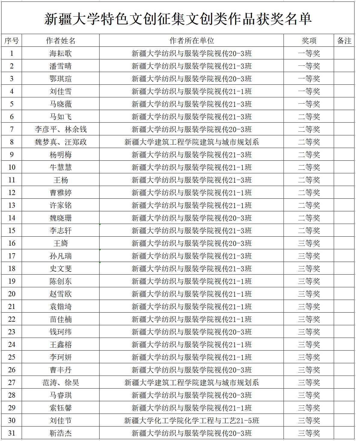 【公示】关于新疆大学特色文创作品征集获奖名单公示的通知