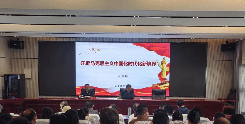北京师范大学中共党史党建研究院院长、博士生导师,国务院学位委员会学科评议组成员,国家社科基金评审专家,教育部高校思政课教指委咨询委员、中华人民共和国国史学会副会长王炳林教授应邀为我院师生作题为《开辟马克思主义中国化时代化新境界》的学术讲座。讲座由新疆大学党委常委、副校长,马克思主义学院院长、铸牢中华民族共同体意识研究基地主任、哲学研究所所长顾光海教授主持,马克思主义学院师生100余人聆听讲座。