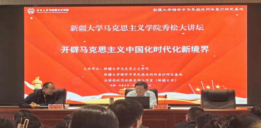 2023年10月26日上午,由新疆大学马克思主义学院、新疆大学铸牢中华民族共同体意识研究基地共同主办的新疆大学马克思主义学院秀松大讲坛(第二十一讲)隆重开讲。