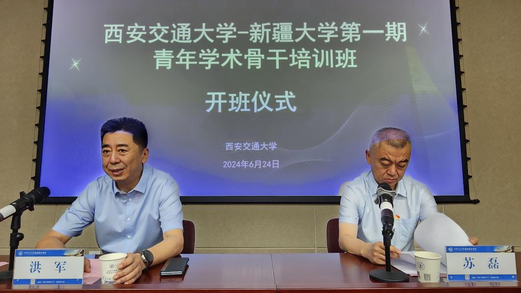 西安交通大学党委常委、副校长洪军参加了新疆大学首期青年学术骨干培训班开班仪式,他对新疆大学青年学术骨干培训班开班表示祝贺,并介绍了西安交通大学的发展历程和发展战略,讲述了以“爱国主义”为核心的西迁精神,以及中国西部科技创新港创新引擎、智慧学镇、绿色家园的建设理念。他希望,青年学术骨干作为学校储备人才,要充分认识到大学的使命,坚持为解决“卡脖子”问题而培养人才,坚持以科技创新服务地方社会经济发展,坚持传承中华文明,讲好中国故事。