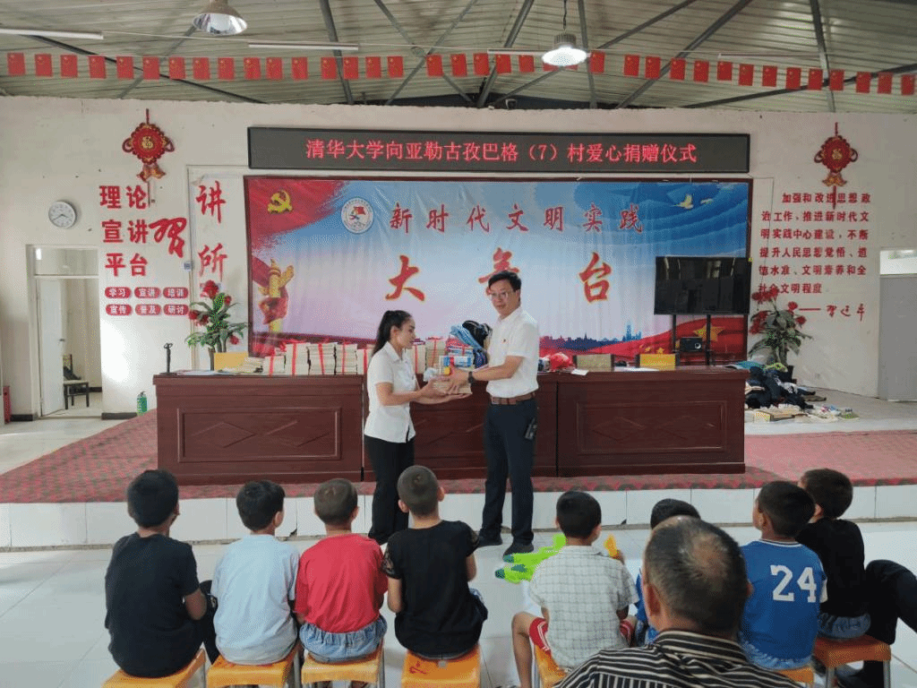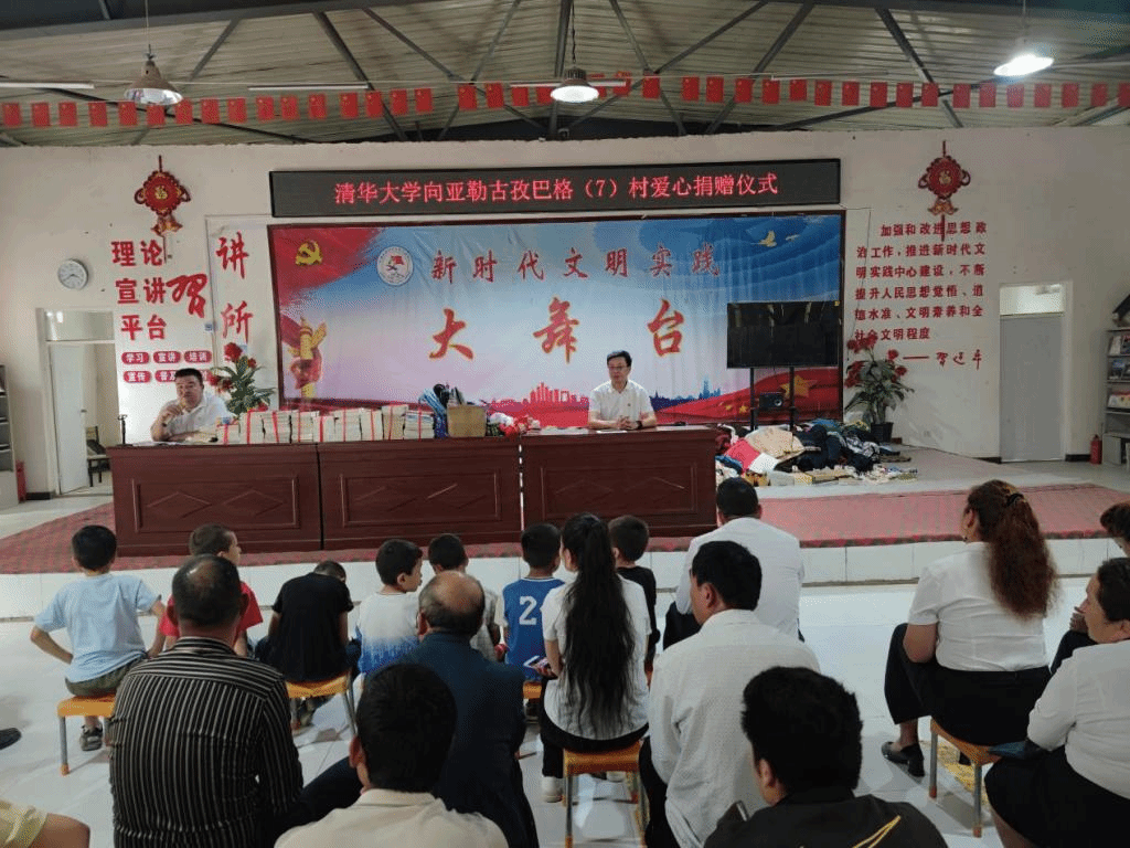 7月1日,清华大学第二次爱心捐赠仪式在依提木孔镇亚勒古孜巴格村村委会会议室举行,捐赠仪式由新疆大学驻亚勒古孜巴格村第一书记杨军主持。