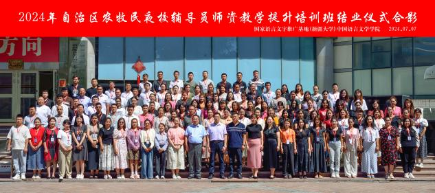 7月7日,自治区首批农牧民夜校辅导员师资教学培训项目于圆满落幕。此次培训旨在提升农牧民夜校辅导员的教学能力和专业素养,以更好地服务于民族地区广大农牧民学员,推动农牧区的国家通用语言文字教育发展和人才培养,助力乡村振兴。来自和田地区、昌吉州的120名农牧民夜校辅导员汇聚新疆大学,经过为期一周的培训,共同经历了一段难忘的学习旅程。