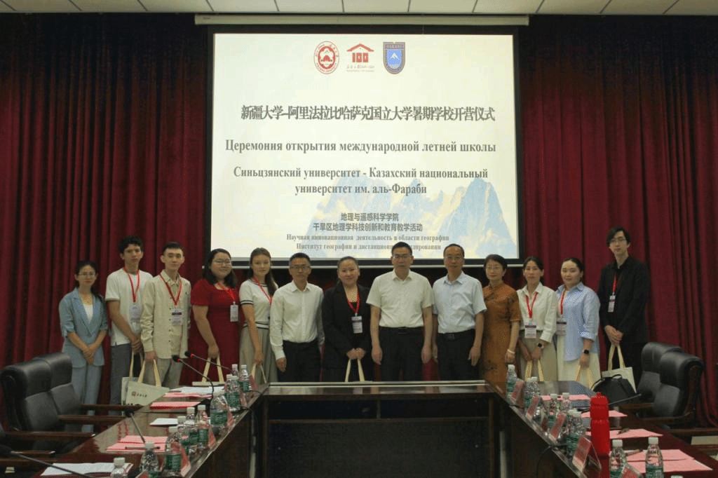 7月11日,中国政府奖学金项目新疆大学—阿里-法拉比哈萨克国立大学暑期学校暨地理与遥感科学学院“干旱区地理学科技创新和教育教学活动”开营仪式在新疆大学红湖校区行政楼一楼会议室成功举行。大学党委常委、副校长粟智出席此次开营仪式,阿里-法拉比哈萨克国立大学地理与环境科学学院参加暑期学校的师生,新疆大学国际交流与合作处处长朱新武、国际文化交流学院院长李圃、地理与遥感科学学院张峰及学院相关负责人参加开营仪式。仪式由新疆大学地理与遥感科学学院副院长杜克平主持。