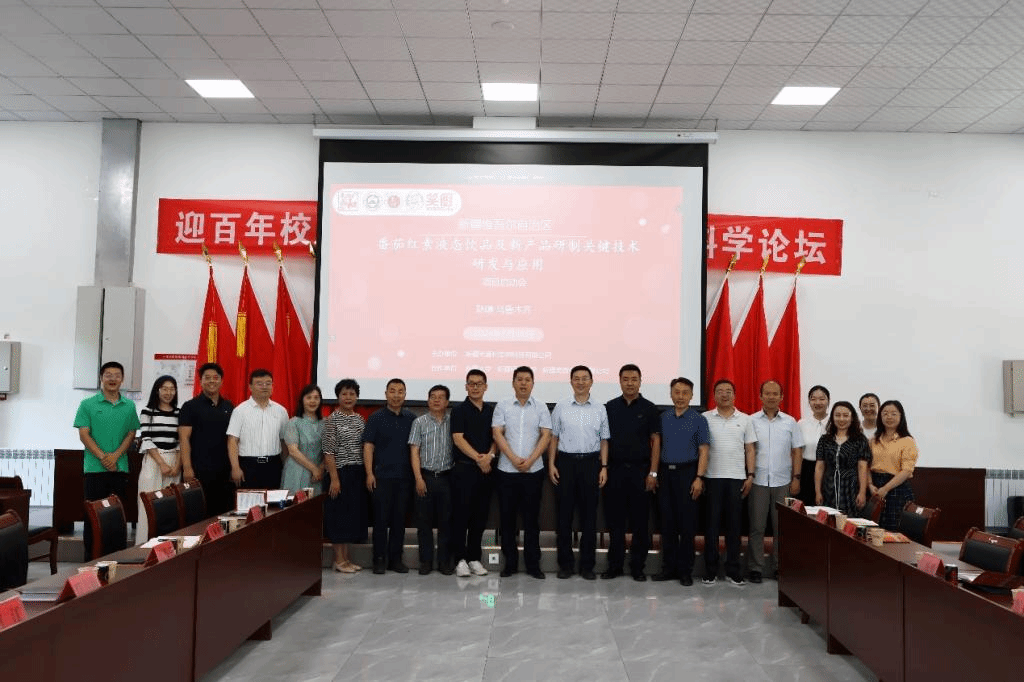 为贯彻落实自治区党委工作部署,加速打造“八大产业集群”为支撑的现代化产业体系,新疆天盛和生物科技有限公司作为牵头单位,与新疆大学、新疆师范大学、新疆笑厨食品有限公司联合承担的自治区重点研发专项“番茄红素液态饮品及新产品研制关键技术研发与应用”项目。本项目于7月16日在项目主要参与单位新疆大学博达校区生命科学与技术学院102会议室隆重召开项目启动会。来自新疆维吾尔自治区科学技术厅、厦门大学、新疆大学、新疆医科大学、自治区药物研究所等多家科研院所的领导和专家莅临指导。