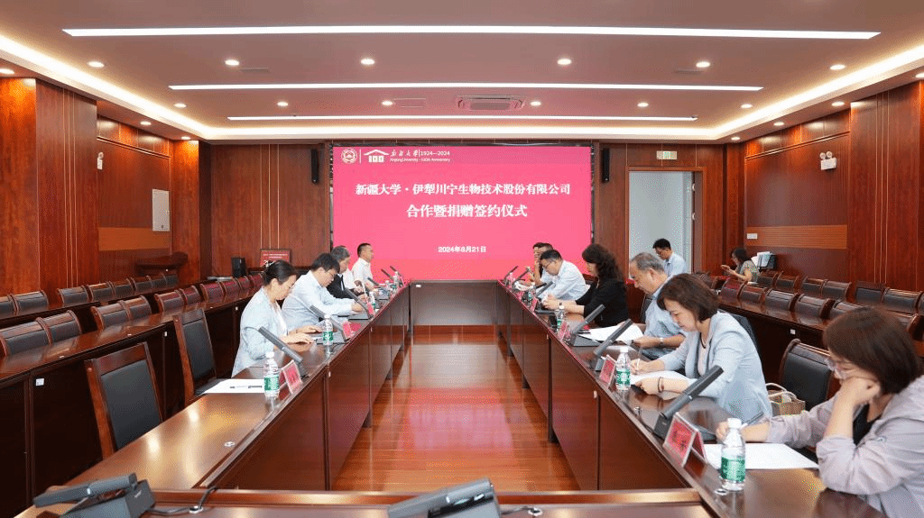 2024年8月21日上午,新疆大学与伊犁川宁生物技术股份有限公司在博达校区举行合作暨捐赠签约仪式。仪式由学校党委常委、副校长粟智主持。