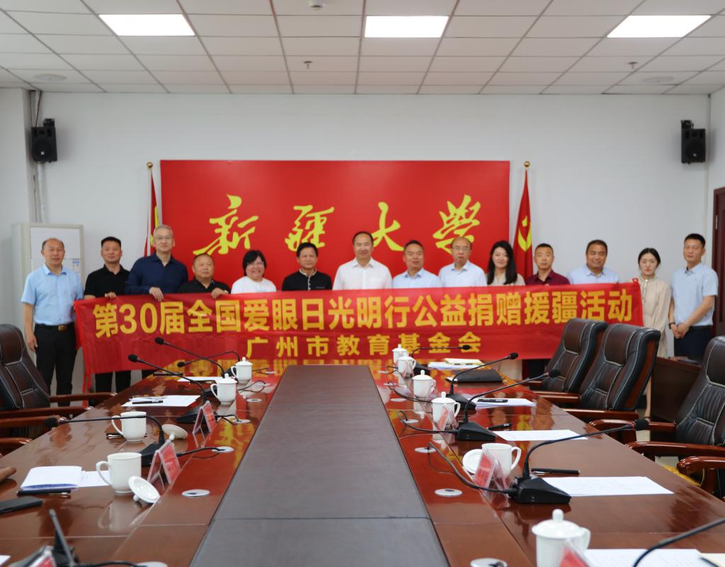 广州市教育基金会携广州市博研慈善促进会,联合广州市达达眼科诊所有限公司、鼎熙国讯科技有限公司、乌鲁木齐市公交珍宝巴士有限公司共同为我校学生捐赠近视眼镜3500副,折合人民币28万元。徐文谦表示,此次向新疆大学捐赠近视眼镜,是广州市教育基金会在新疆开展教育支援的重要实践,希望通过一副副眼镜,为同学们清晰视物、专注学习提供实实在在的帮助,让大家能够更好地畅游知识的海洋,追逐梦想的光芒。