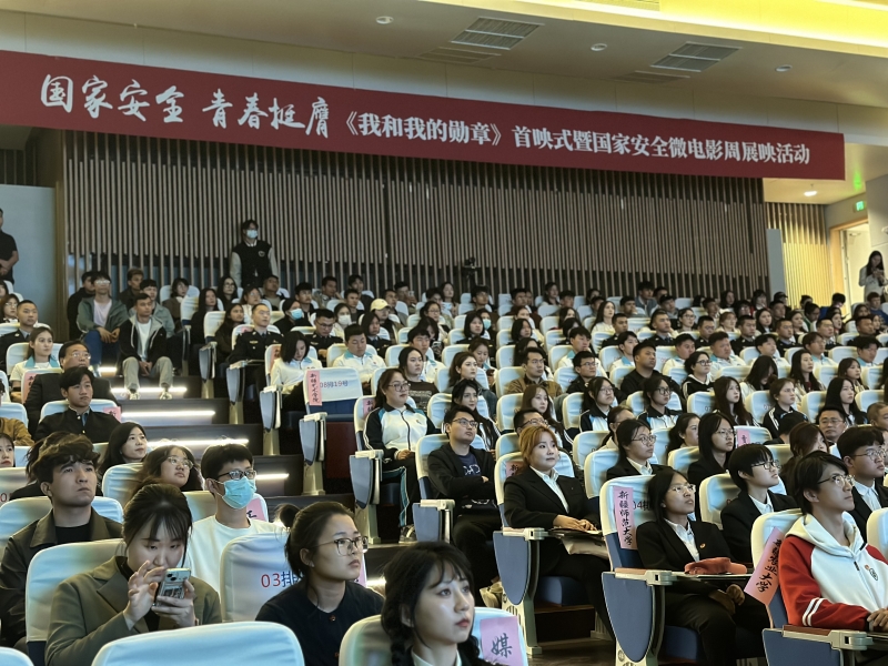 当日,新疆大学300名团员青年与在乌鲁木齐市的8所高校师生代表一起,观看了国家安全公益微电影《我和我的勋章》首映,聆听国家安全主题微团课,并对全疆团员青年发出为维护国家安全挺膺担当倡议。