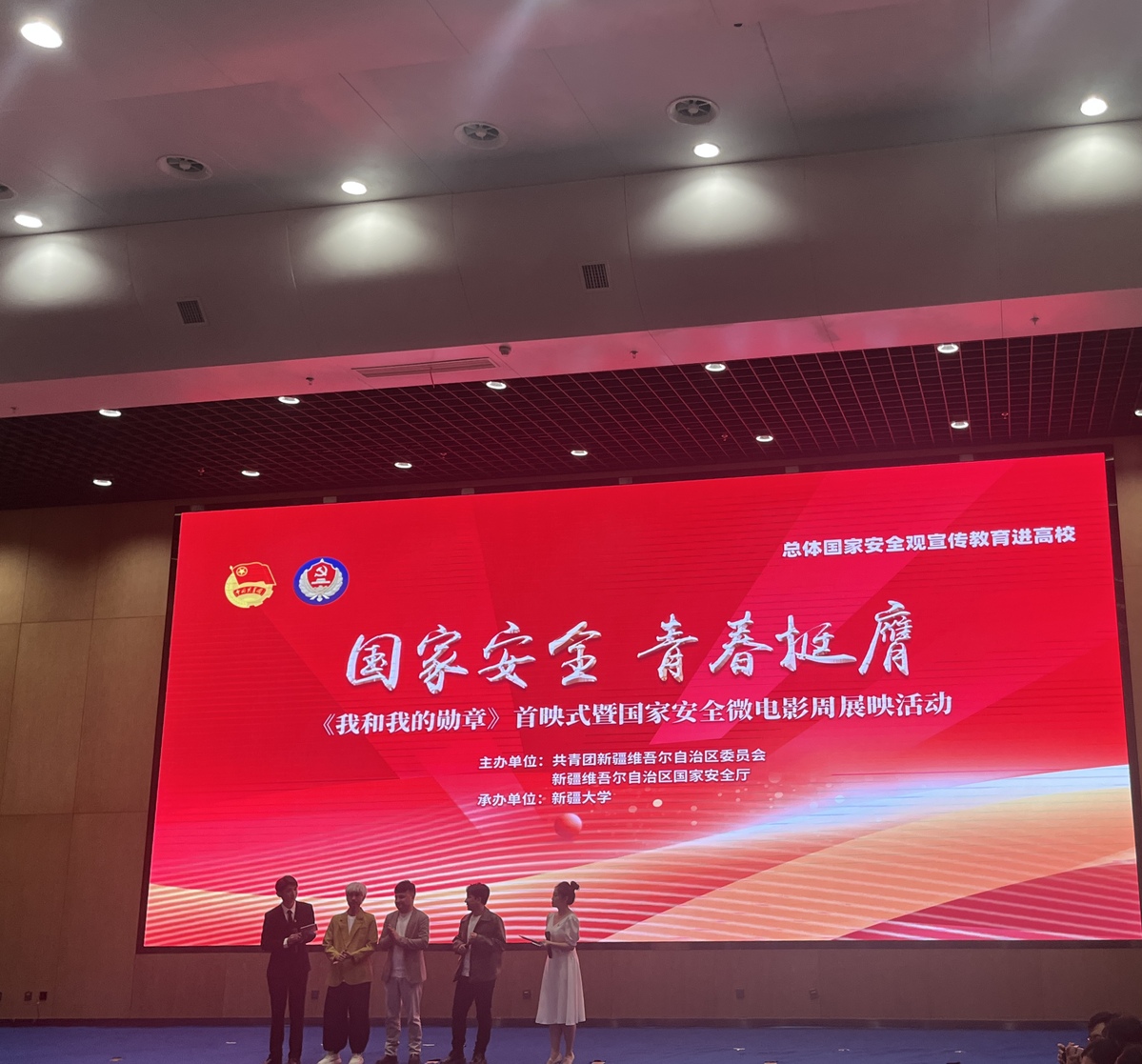 当日,新疆大学300名团员青年与8所在乌鲁木齐高校师生代表一起,共同观看国家安全公益微电影《我和我的勋章》首映,聆听国家安全主题微团课,并对全疆团员青年发出为维护国家安全挺膺担当倡议。