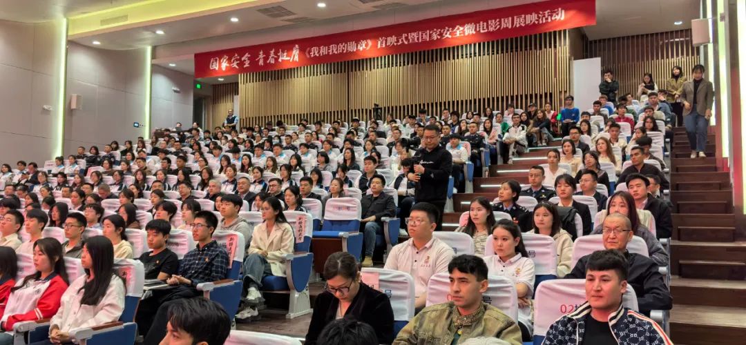 当日,新疆大学300名团员青年与8所在乌鲁木齐高校师生代表一起,共同观看国家安全公益微电影《我和我的勋章》首映,聆听国家安全主题微团课,并对全疆团员青年发出为维护国家安全挺膺担当倡议。