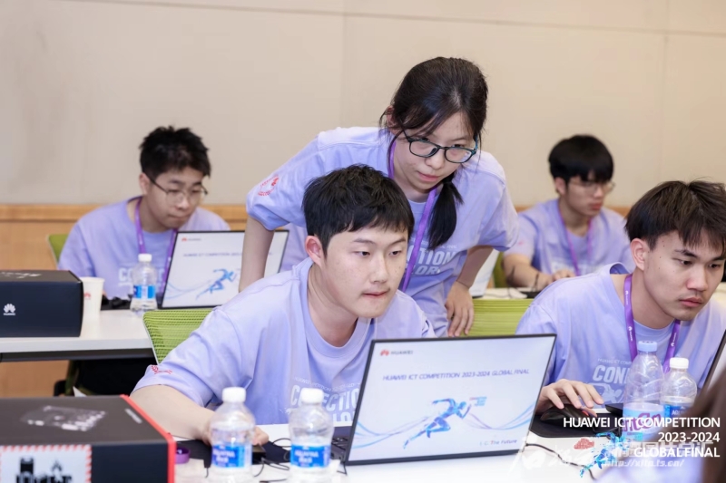 近日,华为ICT大赛2023-2024全球总决赛上,新疆大学计算机科学与技术学院团队学生在比赛中。图/新疆大学提供