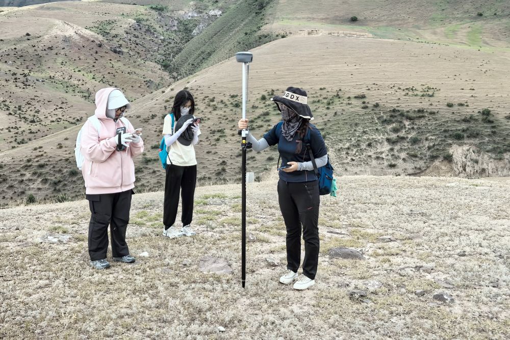 盛夏时节,五湖四海的游人来到新疆,沉浸在北疆草原一睹网红景观“天马浴河”,穿梭在南疆高原饱览雪山风光。这其中,有群特别的“游人”,他们翻山越岭、跋山涉水,甚至风餐露宿,只为一件事——寻找文物。记者见到署阿克·吐亚克别克时,她正在对一处石构墓葬进行打点勘测。这个21岁的姑娘,是新疆大学考古学专业学生。跟她一起的,还有7个“00后”寻宝小伙伴。现在,他们有一个新身份——新疆伊犁哈萨克自治州尼勒克县第四次全国文物普查工作队队员。上午八九点,空气中带着一丝难得的凉意,尼勒克县“四普”工作队赶着天光,驱车前往不可移动文物所在地。“有的在戈壁荒滩,有的在悬崖峭壁,有的还藏在庄稼地里。”全队唯一的“80后”——队长王新平从事文物工作11个年头了,对尼勒克县不可移动文物的“藏身之处”门儿清。