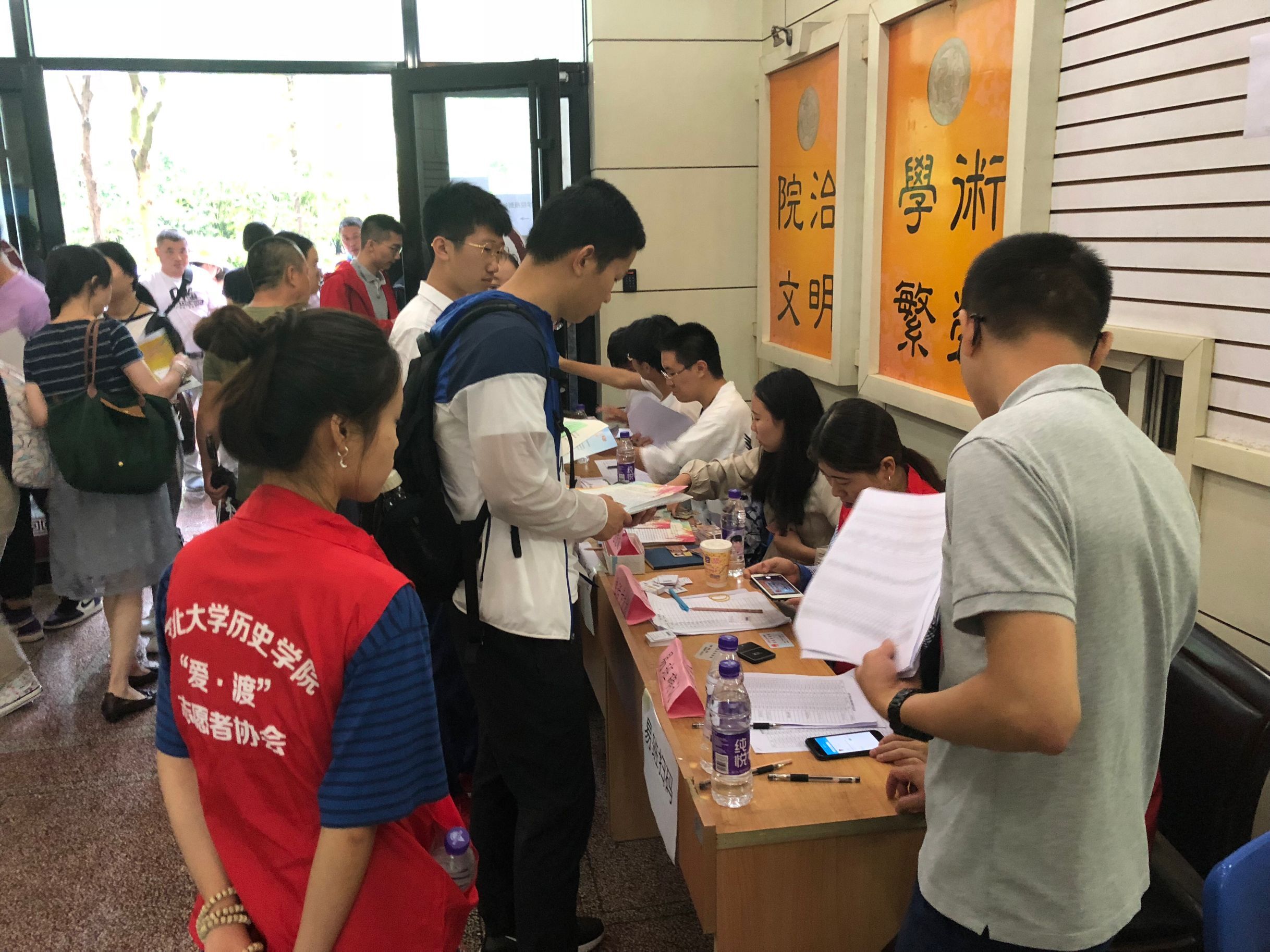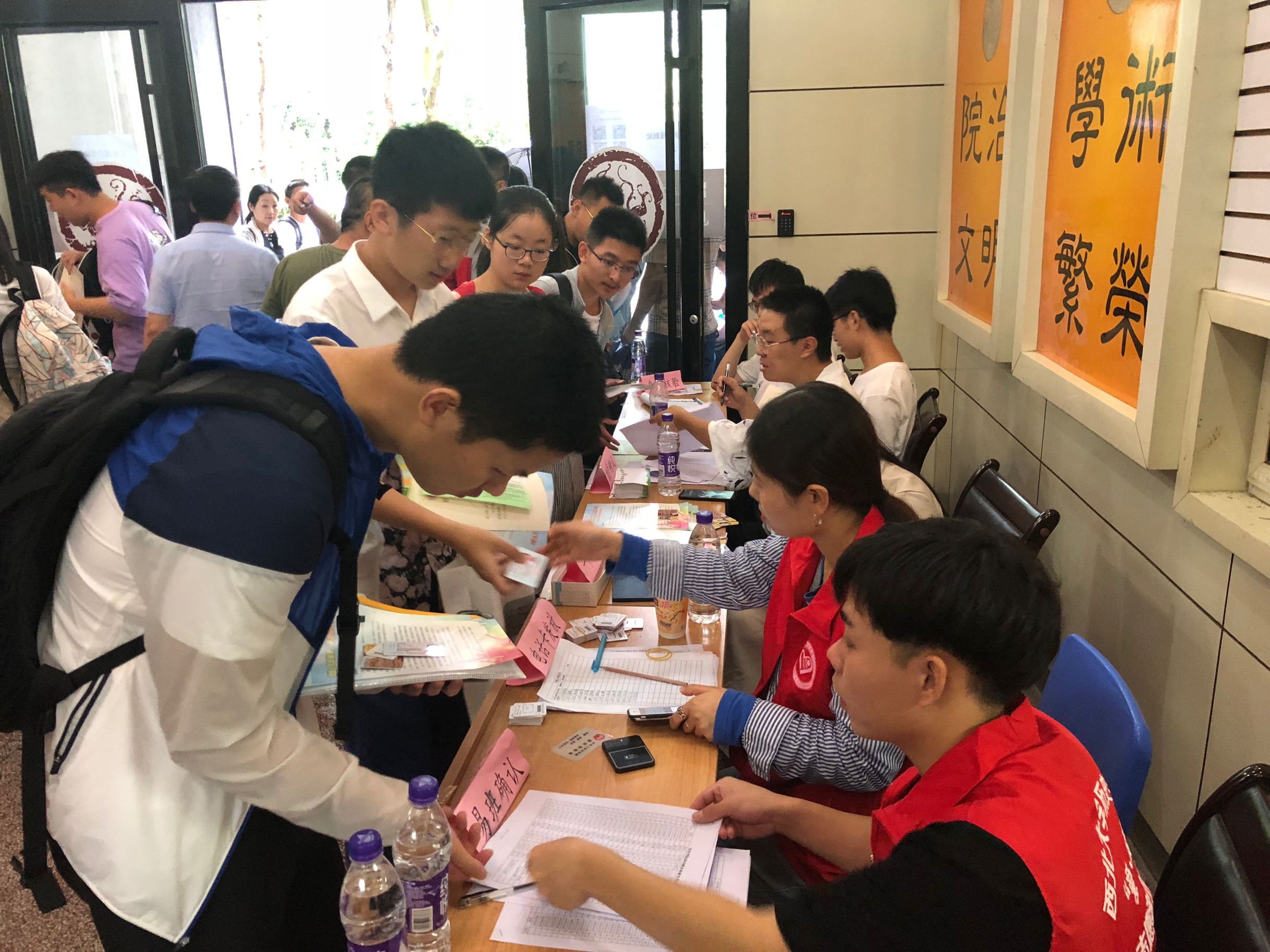 上午八时许,2019级的萌新们,或独行,或在家长的陪同下陆陆续续来到迎新工作点,各小组工作随即有条不紊展开:报到登记、看管搬运行李、答疑解惑,迎新点热情涌动。高效的办事效率,亲切的待人态度,很快就建立了新生及其家长对历史学院学生的认可与信赖。