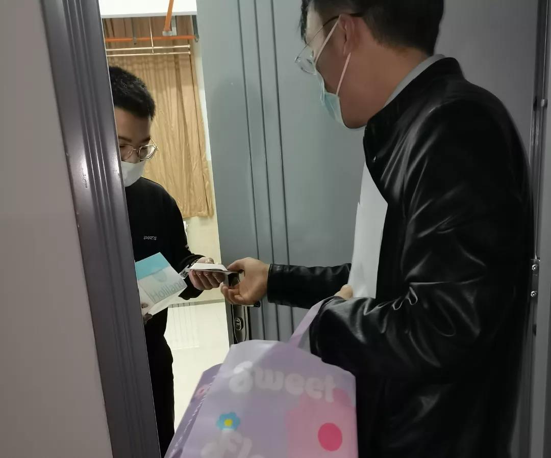 隔离期间,辅导员向隔离学生精准推送“居家学习心理防护小贴士”等,引导学生从正规渠道获取信息、用科学方法调节情绪、用积极态度充实生活、从良性关系寻求支持。同时,组织班级干部、宿舍同学等组成志愿者为隔离学生购置生活用品,配送一日三餐和取寄快递等。为保证学生教学计划的正常进行,安排班级学习委员为隔离学生利用腾讯会议、钉钉等平台软件进行课程直播。此外,学院党委组织志愿者精心绘画主题卡片,并为在长安校区硕博楼集中隔离观察的8名学生送去小蛋糕慰问品和免洗凝胶等防疫物品,表达学院党委对同学们的关心和诚挚谢意。