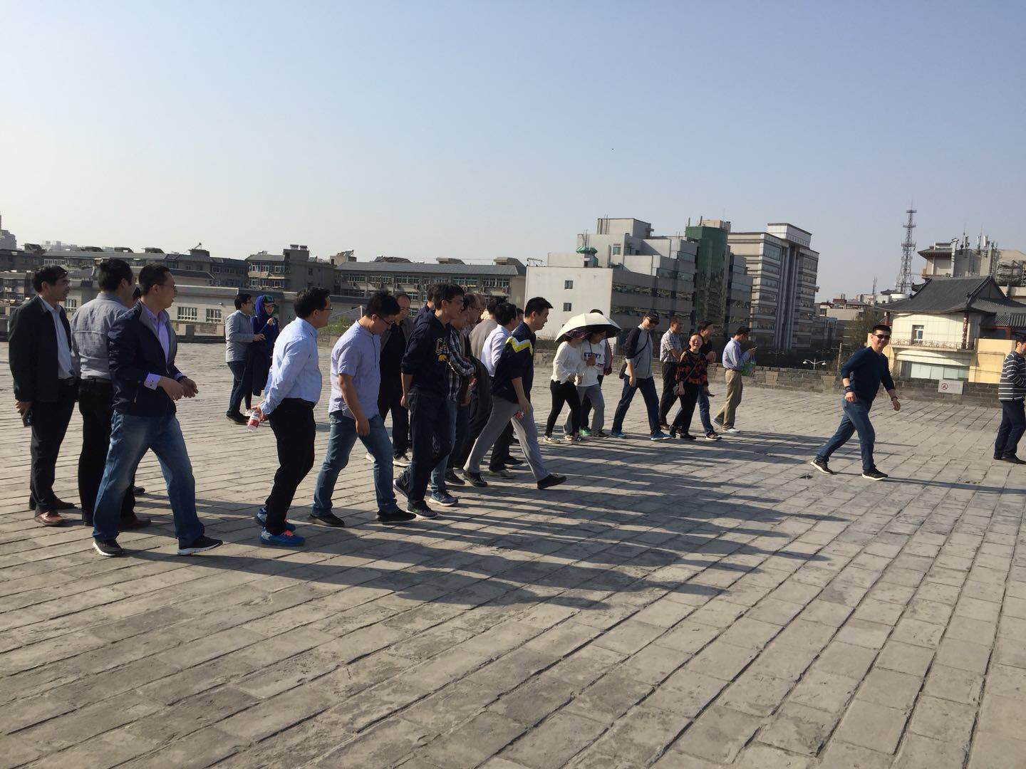 在参观学习结束后,全体教职工登上城墙,开展历史学院教职工第二届城墙健步走活动,活动起点为含光门,终点为文昌门。
