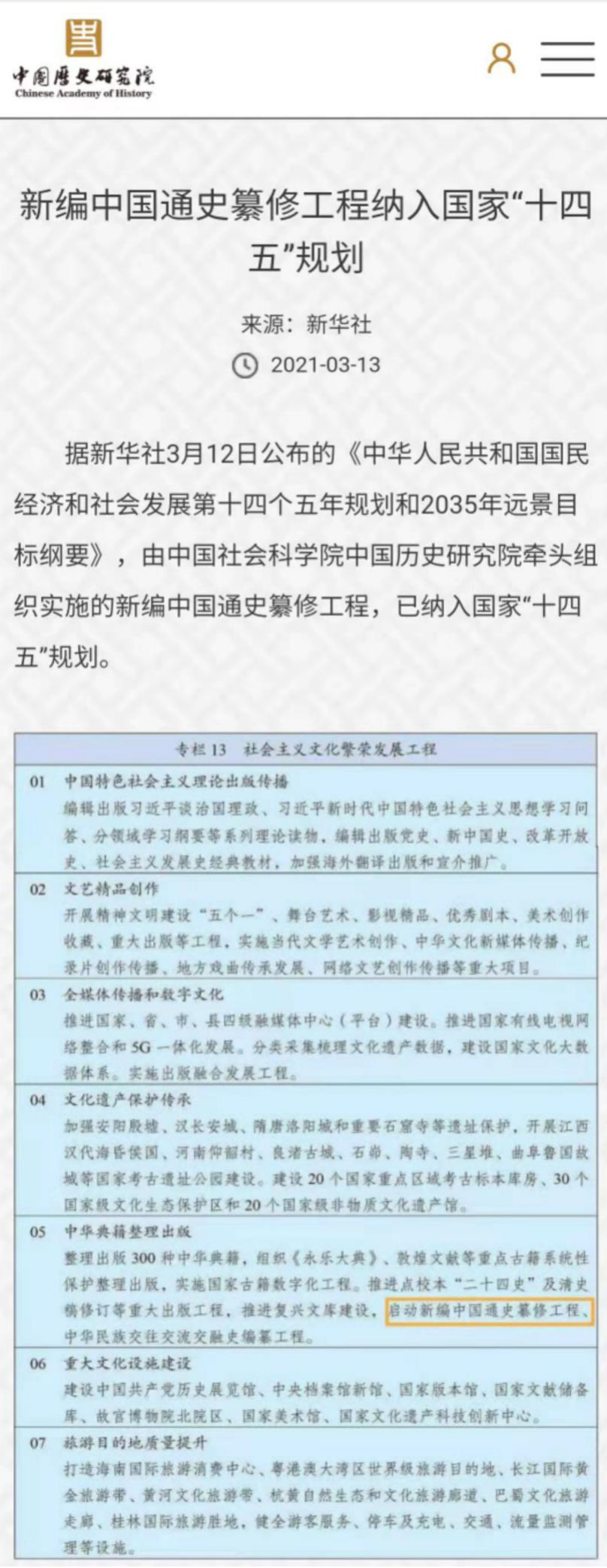 我院参与的“新编中国通史纂修工程” 纳入国家“十四五”发展规划