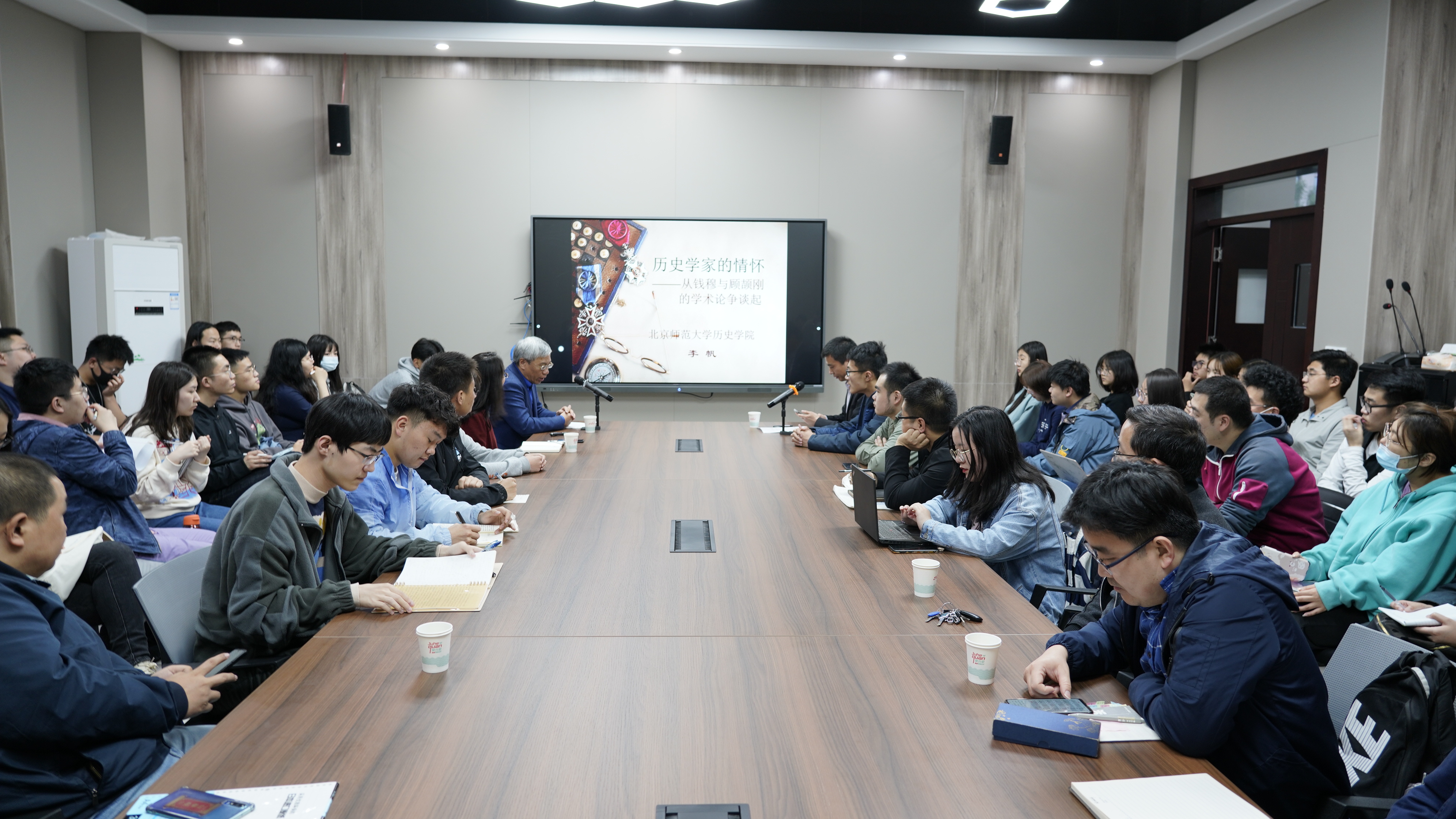 报告结束后,李帆和与会师生就历史学家的家国情怀、史学家的身份认同、近代以来经史地位的变化等问题进行了交流互动。