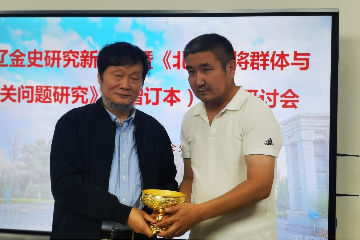 研讨会上宋辽金史研究院院长陈峰教授还分别颁发了副院长和秘书长聘书。哈萨克斯坦亚萨维哈萨克土耳其国际大学留学生别克向研究院赠送了纪念品喀山锅。