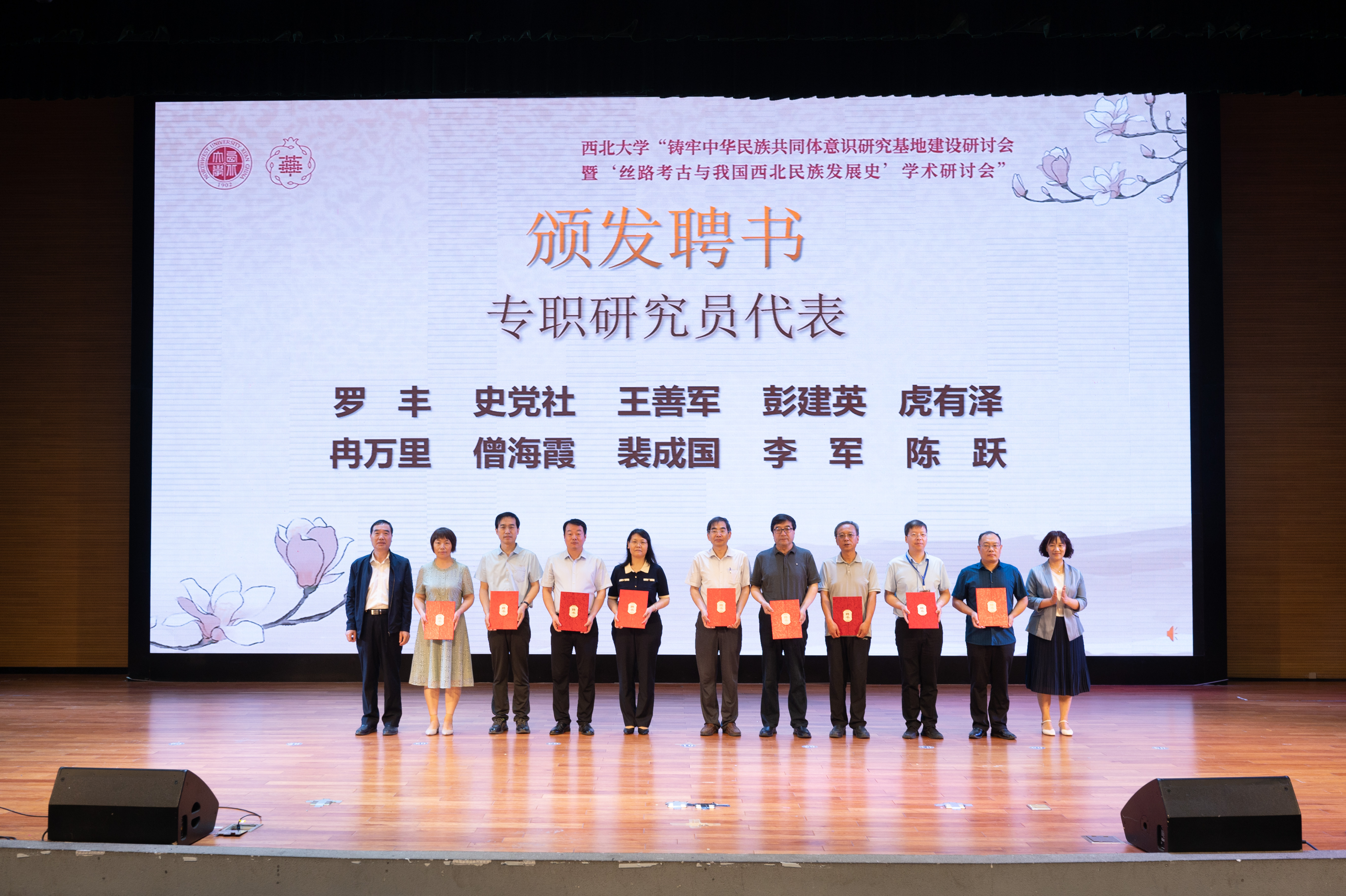开幕式上,与会领导同著名秦汉史专家、西北大学历史学院教授、基地主任王子今一起为西北大学铸牢中华民族共同体意识研究基地揭牌。随后,张清代表基地宣读研究员聘任决议。
