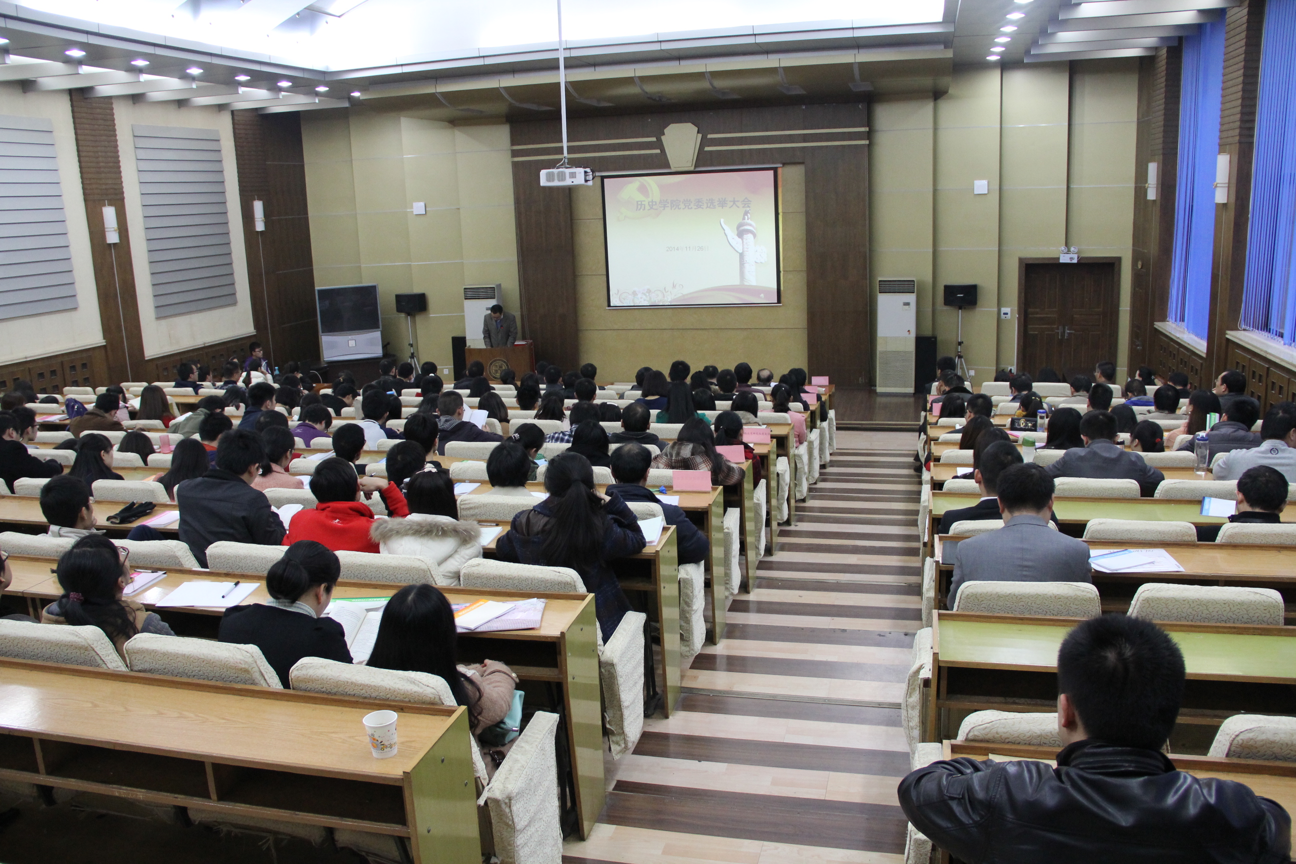 下午16时,选举大会在太白校区图书馆报告厅举行。在历史学院副院长张艺昆的主持下,参加选举大会的全体党员师生依次有序地进行了投票。本次大会议程有两项,一是听取赵万峰同志代表上届党总支做工作报告,二是选举产生历史学院党委委员。赵万峰同志的工作报告说明了过去三年学院党总支的基本情况。自学院党总支成立以来结合学院实际情况,深入贯彻落实科学发展观,紧密结合学校中心工作,认真学习贯彻党的各项方针政策,以建设社会主义核心价值体系为根本,全面加强党的思想建设、组织建设和作风建设,全体党员师生干部爱岗敬业、努力学习工作,充分发挥了党员先锋模范带头和基层战斗堡垒作用。