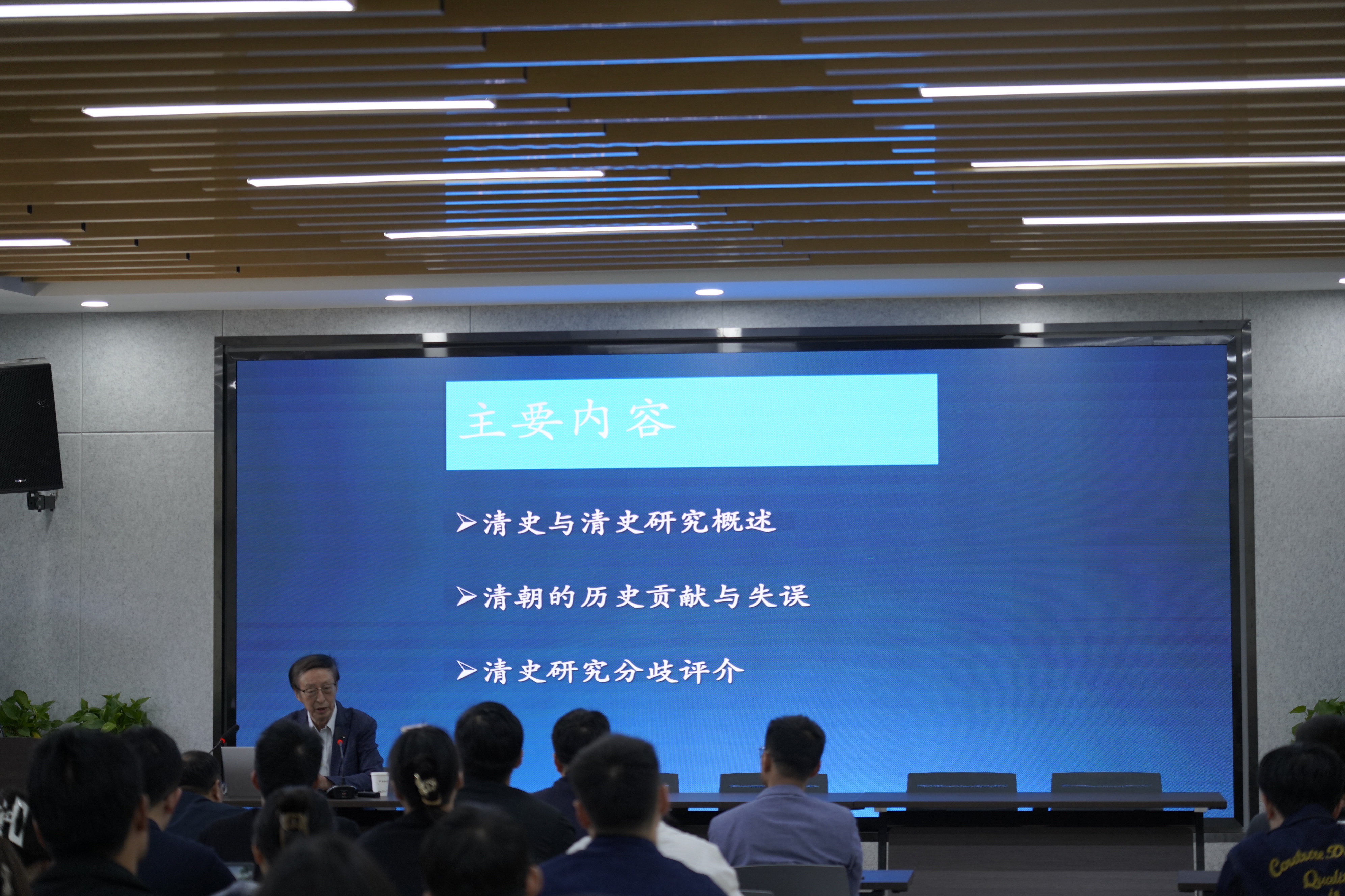 2023年5月12日下午,国家清史编纂委员会委员李治亭研究员为全校师生带来了《清朝的历史地位》的学术讲座,历史学院副院长曹循教授主持,历史学院院长李军教授与校内外师生100余人参加本次讲座。