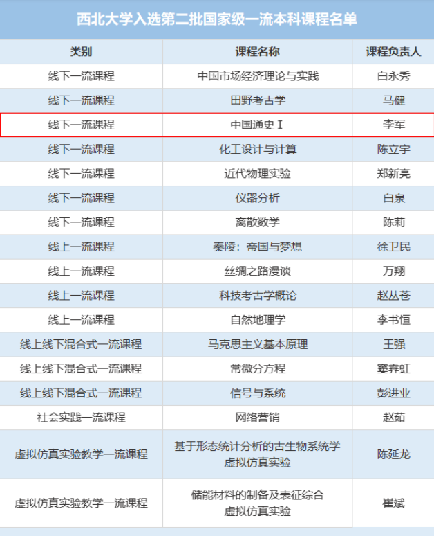 日前,教育部公布第二批国家级一流本科课程认定名单。我院李军教授负责的《中国通史Ⅰ》课程入选。