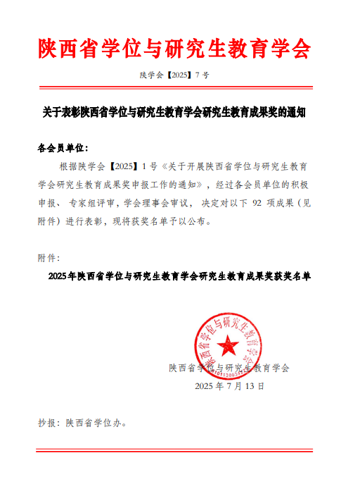 我院获得2025年陕西省学位与研究生教育学会研究生教育成果奖二等奖