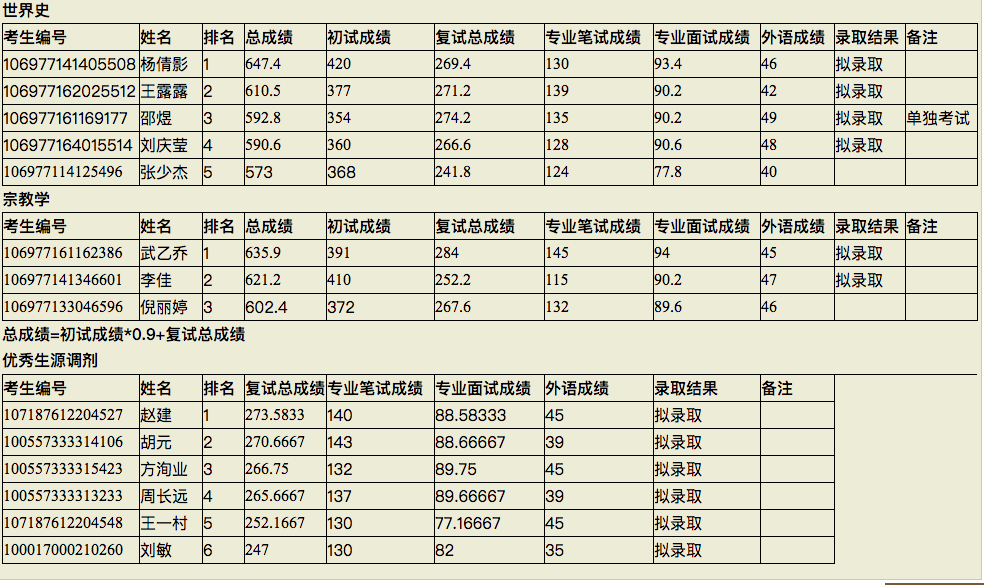 历史学院关于2017年硕士研究生招生复试录取工作公示