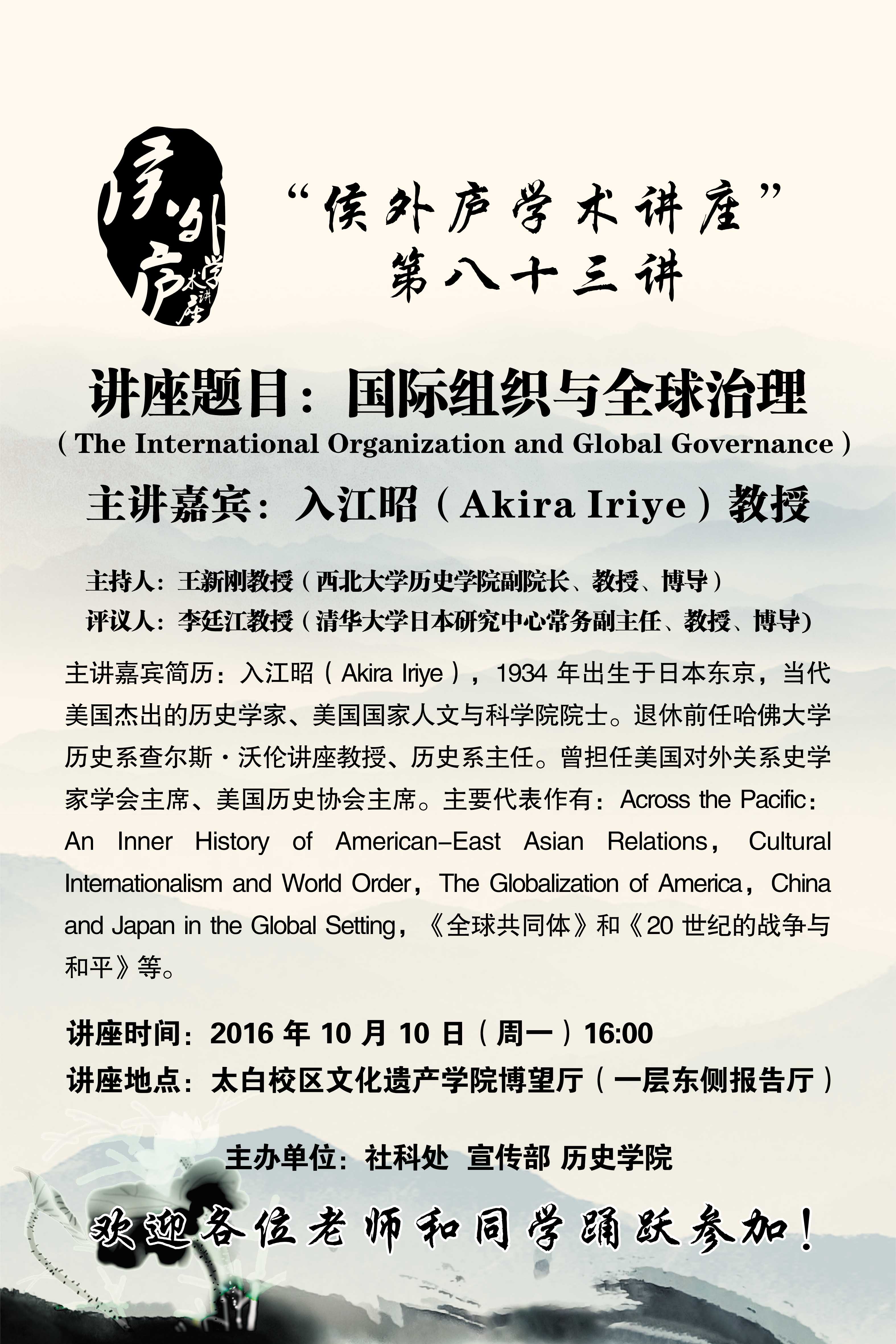 我院承办“侯外庐学术讲座”第八十三讲—国际组织与全球治理