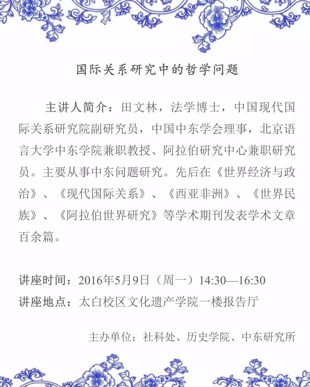 “国际关系研究中的哲学问题”学术讲座