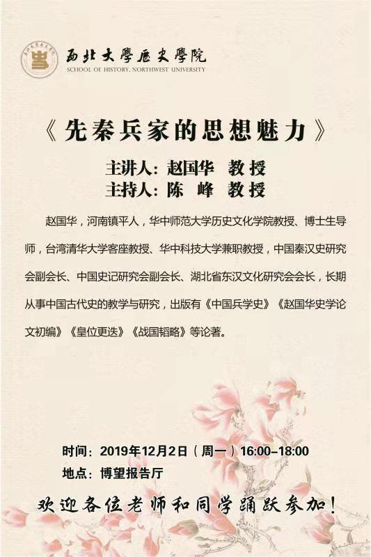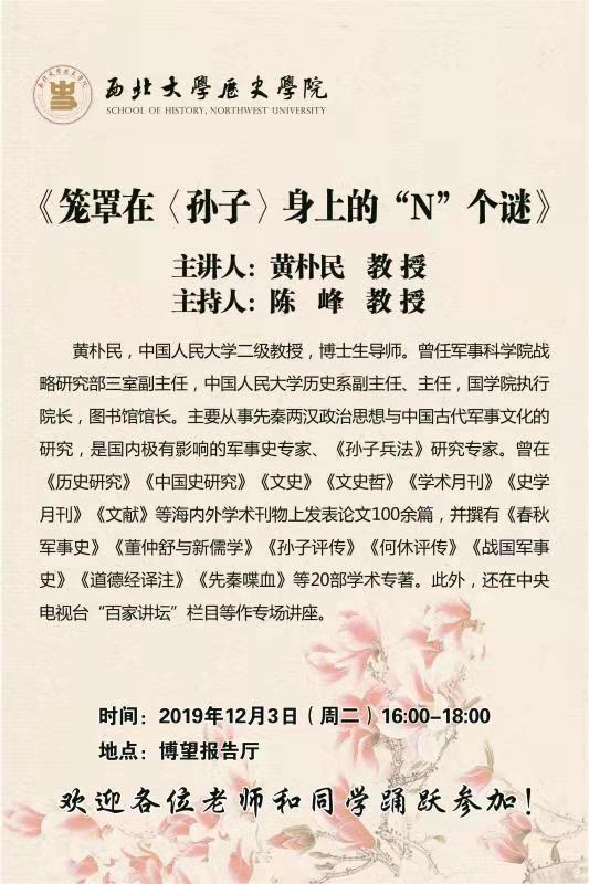 我院将于12月2日、12月3日分别为大家带来赵国华教授的《先秦兵家的思想魅力》、黄朴民教授的《笼罩在< 孙子>身上的“N”个迷》两场精彩的名家讲座。欢迎各位老师和同学踊跃参加!不要错过啦